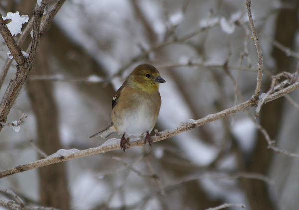 The american goldfinch goes through a significant change in plumage as the seasons change from winter to spring and its mating and nesting habits the females are yellowish green with black wings and tail during summer, changing to a grayish brown with very little yellow and dark brown wings with.